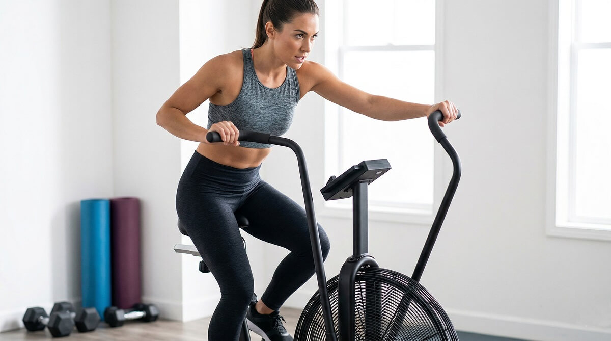 Fan air bikes give the most direct upper-body engagement because the handlebars link directly to the fan resistance. The harder you push and pull, the more resistance you feel.