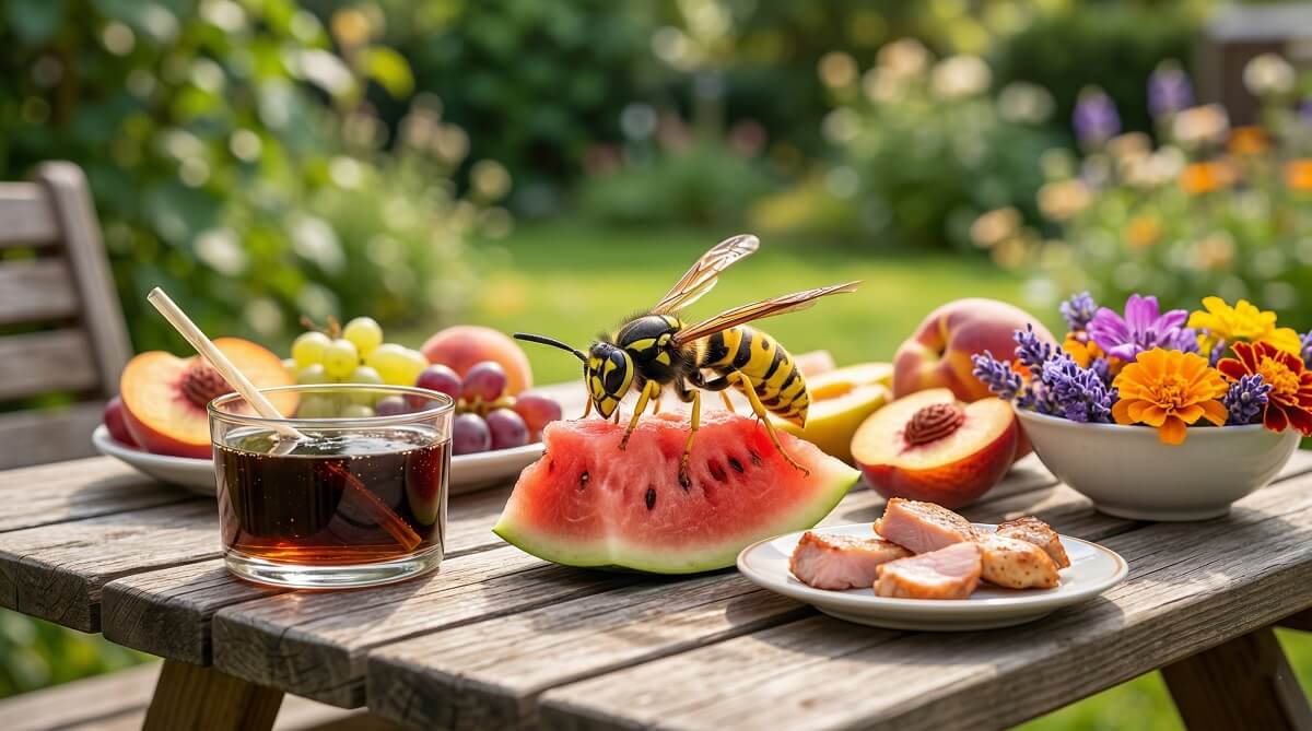 Sweet liquids are the primary fuel for adult wasps. Anything with sugar — open soda cans, juice, beer, ripe or fallen fruit, honey, jam, even the residue inside a recycling bin — registers as a foraging target. This is especially pronounced in late summer and early fall.